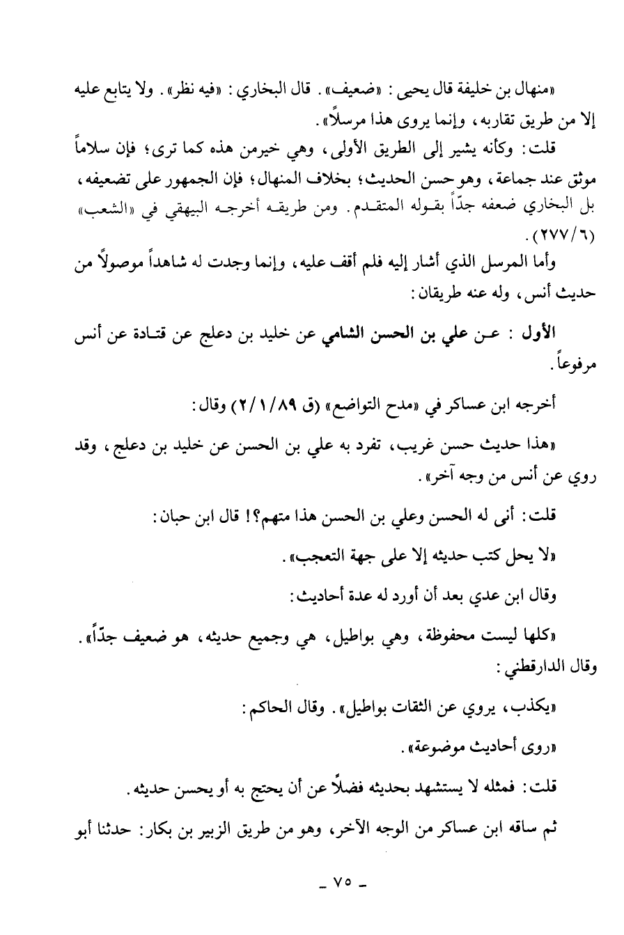 حديث أنس وله عنه طريقان: الأول: عن علي بن الحسن الشامي عن خليد بن دعلج