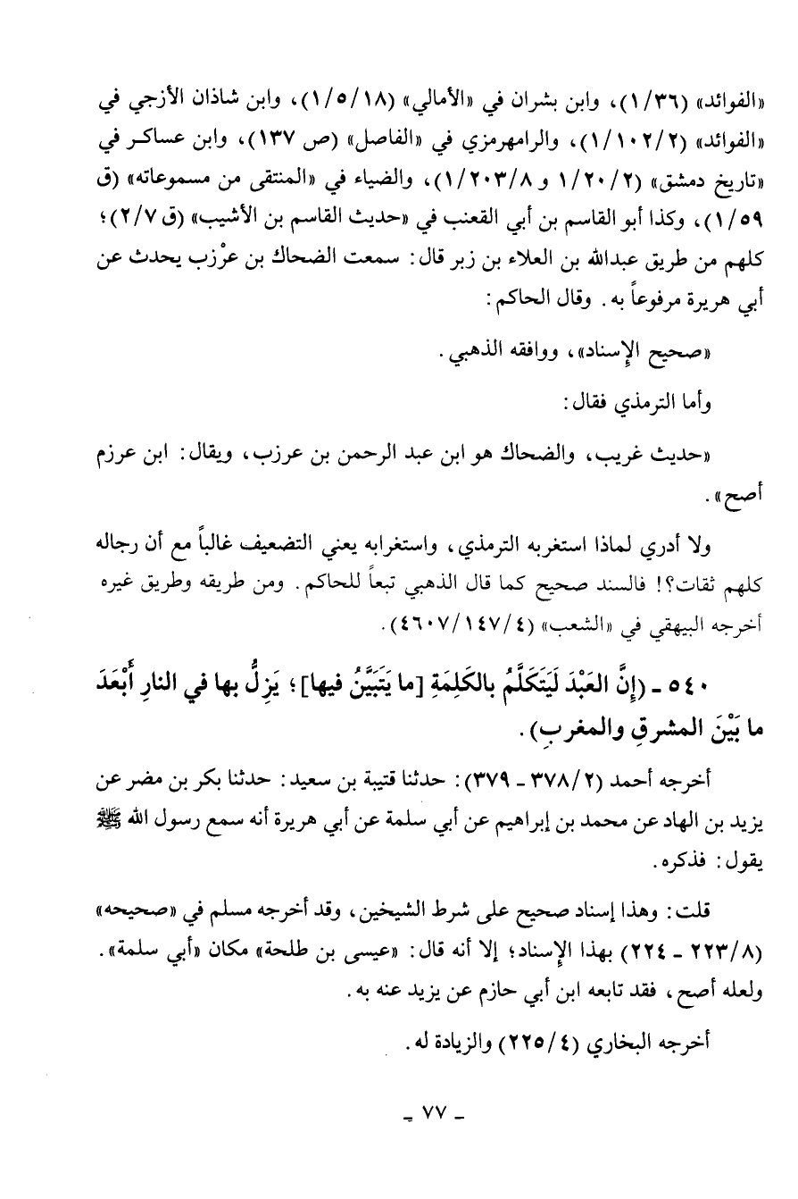 540 - " إن العبد ليتكلم بالكلمة ما يتبين فيها، يزل بها في النار أبعد ما بين