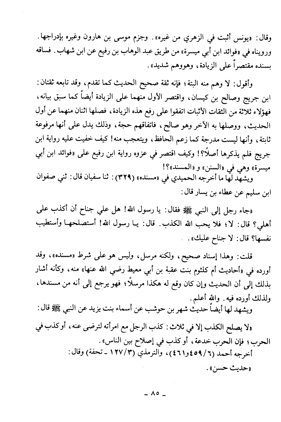 " أحاديث أم كلثوم بنت عقبة بن أبي معيط رضي الله عنها " منه وكأنه أشار بذلك