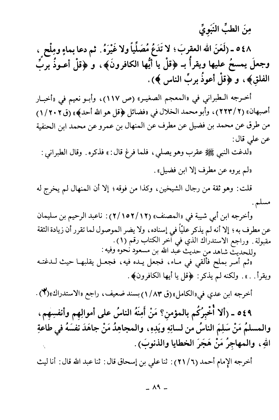 548 - " لعن الله العقرب لا تدع مصليا ولا غيره. ثم دعا بماء وملح وجعل يمسح