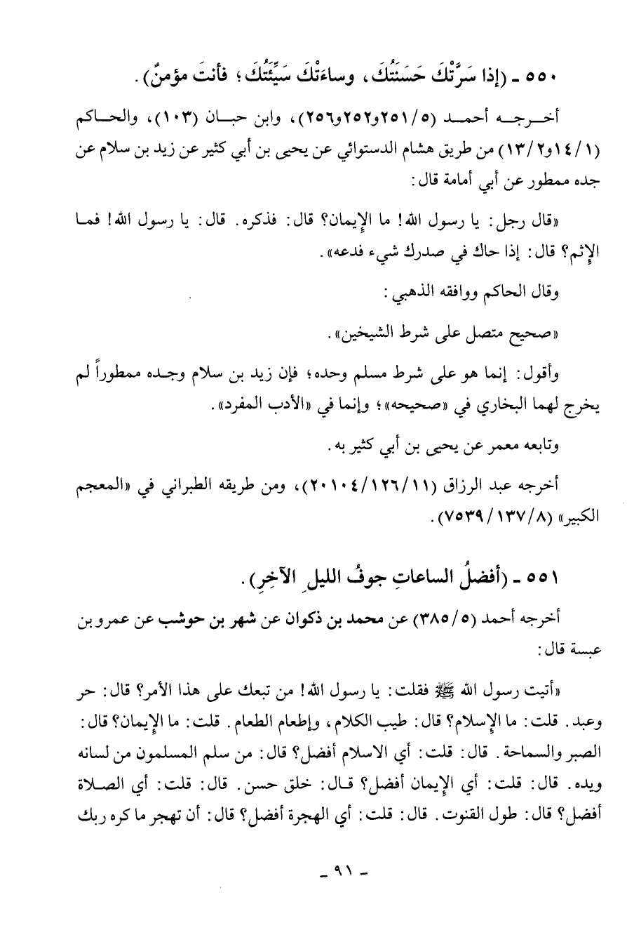 550 - " إذا سرتك حسنتك وساءتك سيئتك، فأنت مؤمن ".