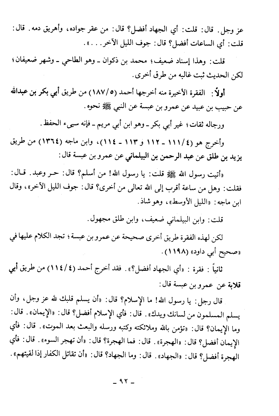 ثانيا: فقرة " أي الجهاد أفضل؟ "، فقد أخرج أحمد (4 / 114) من طريق أبي