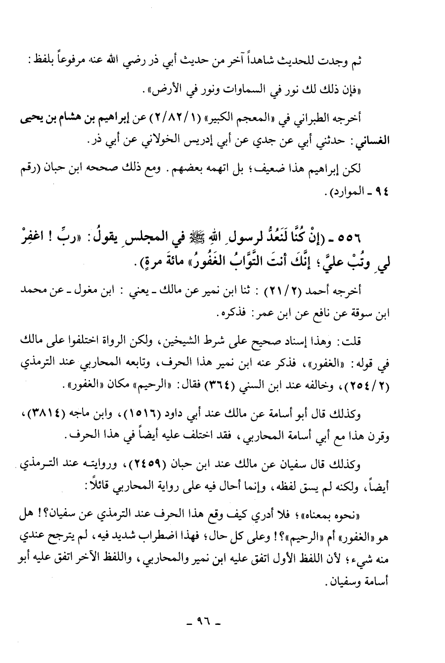 556 - " إن كنا لنعد لرسول الله صلى الله عليه وسلم في المجلس يقول: (رب اغفر لي