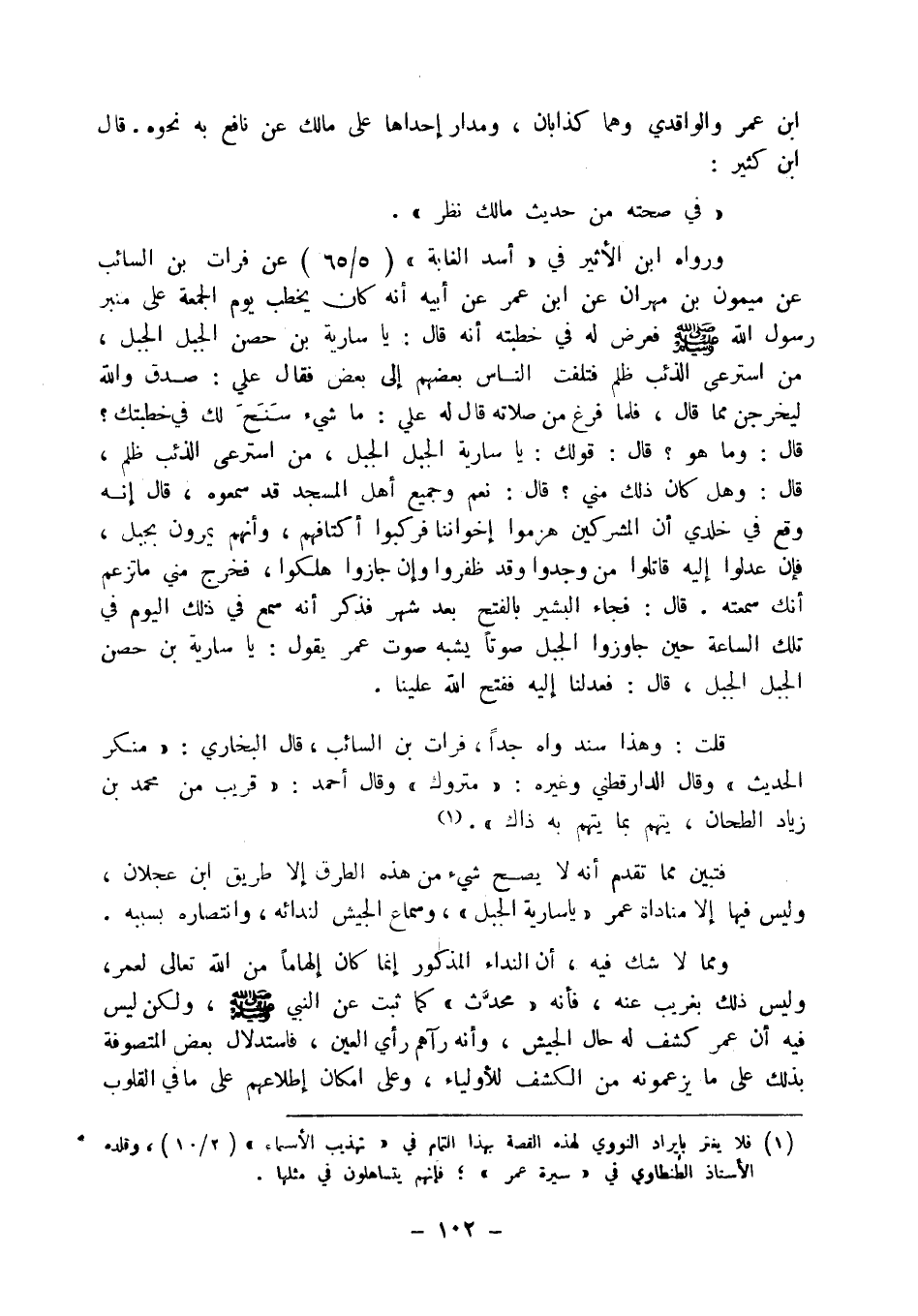 (¬1) فلا يغتر بإيراد النووي لهذه القصة بهذا التمام في " تهذيب الأسماء " (2 / 10) ، وقلده الأستاذ الطنطاوي في " سيرة عمر "، فإنهم يتساهلون في مثلها. اهـ.