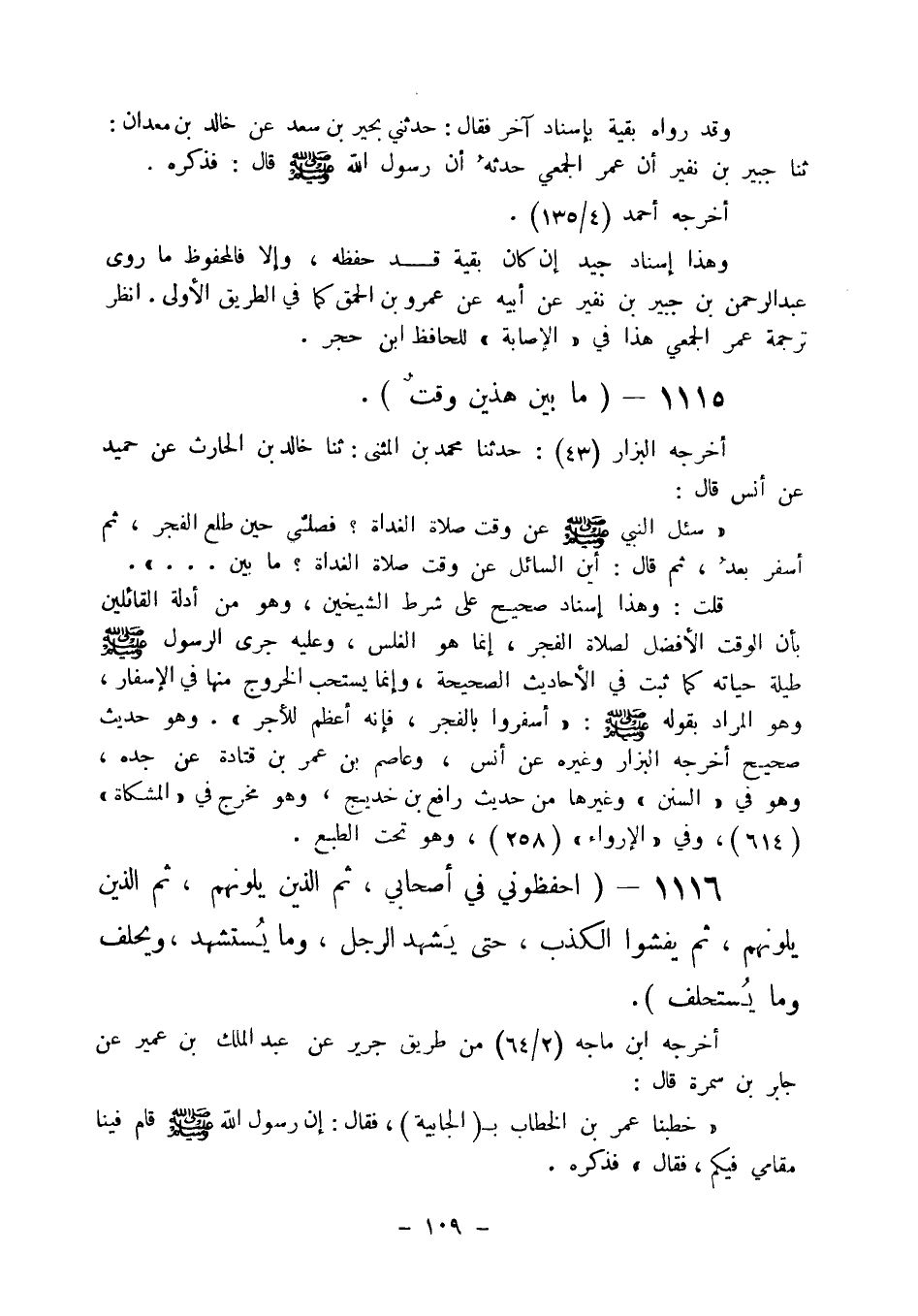 / 135) . وهذا إسناد جيد إن كان بقية قد حفظه وإلا فالمحفوظ ما روى عبد