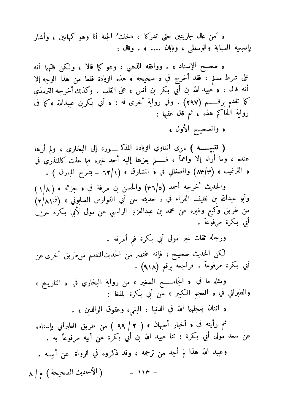 (تنبيه) عزى المناوي الزيادة المذكورة إلى البخاري ولم أرها عنده وما أراه