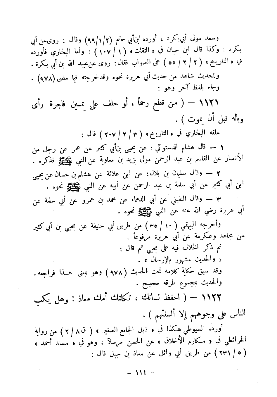 1122 - " احفظ لسانك. ثكلتك أمك معاذ! وهل يكب الناس على وجوههم إلا ألسنتهم ".