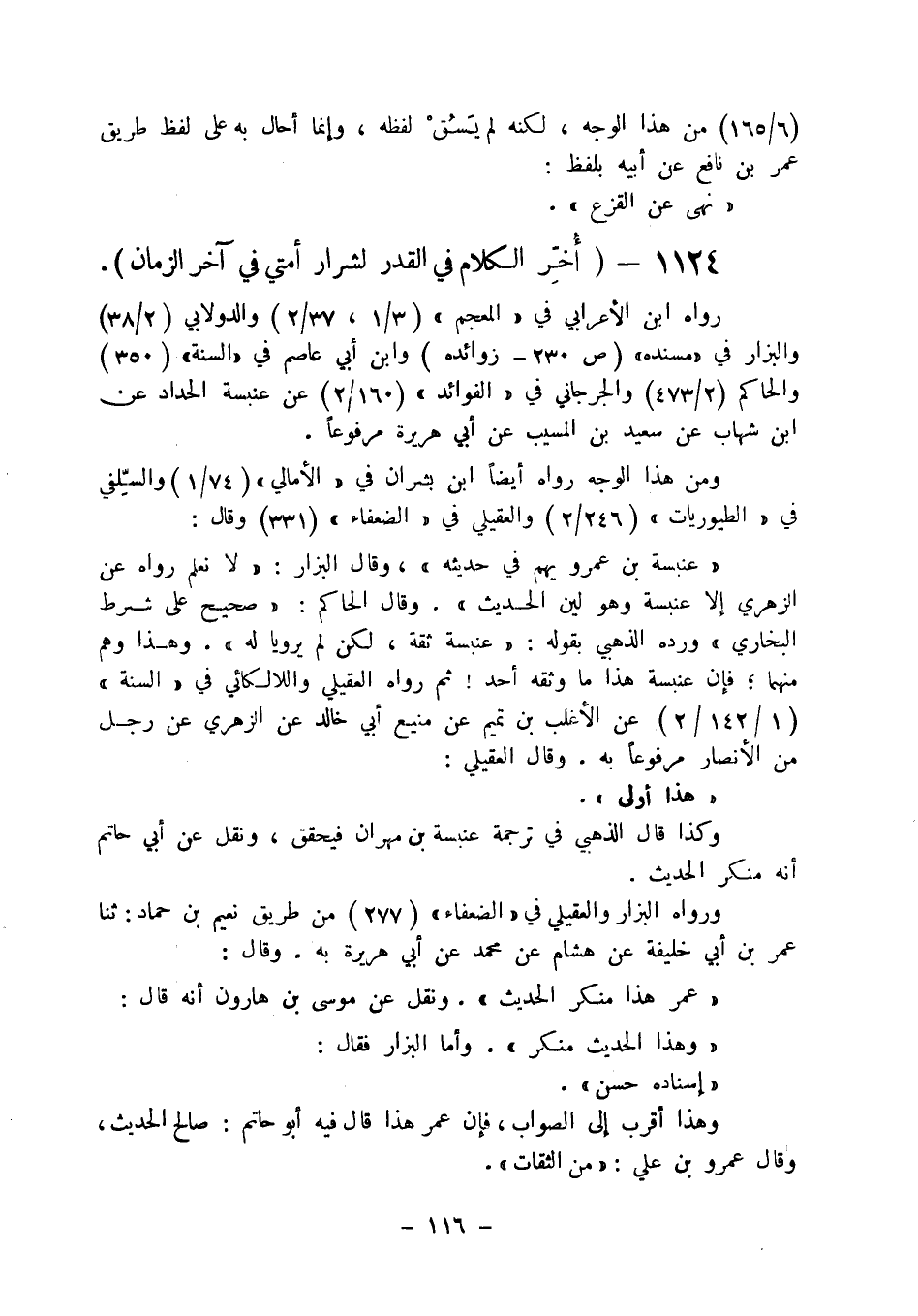 1124 - " أخر الكلام في القدر لشرار أمتي في آخر الزمان ".
