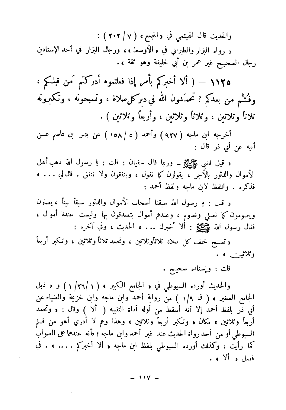 1125 - " ألا أخبركم بأمر إذا فعلتموه أدركتم من قبلكم وفتم من بعدكم؟ تحمدون الله