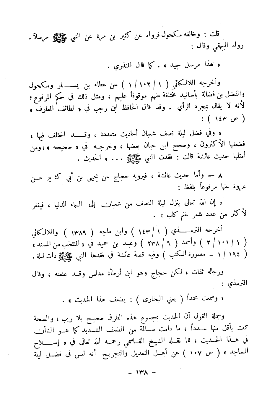 الحافظ ابن رجب في " لطائف المعارف " (ص 143) : " وفي فضل ليلة نصف شعبان