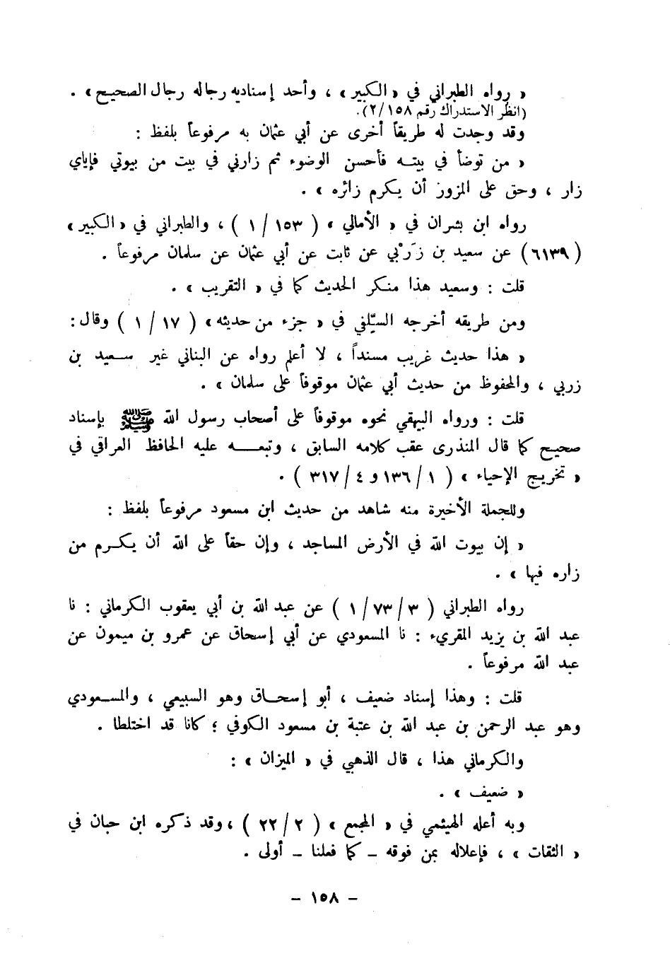 يكرم من زاره فيها ". رواه الطبراني (3 / 73 / 1) عن عبد الله بن أبي يعقوب