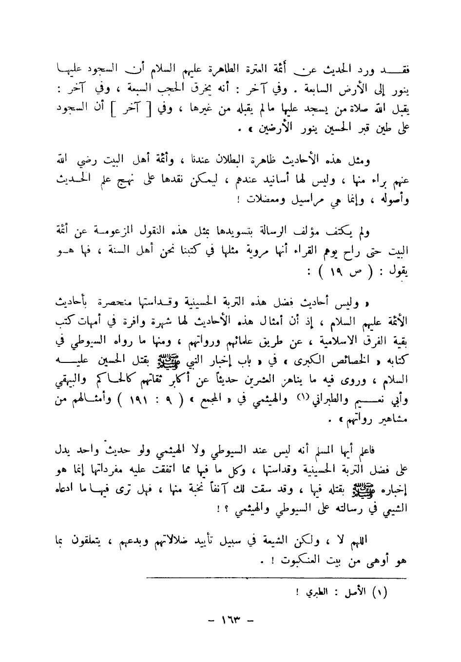 يقول: (ص 19) : " وليس أحاديث فضل هذه التربة الحسينية وقداستها منحصرة