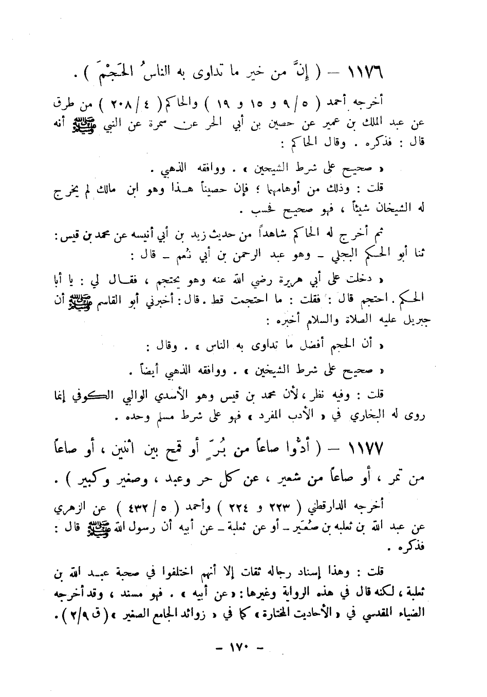 1177 - " أدوا صاعا من بر أو قمح بين اثنين أو صاعا من تمر أو صاعا من شعير عن كل حر