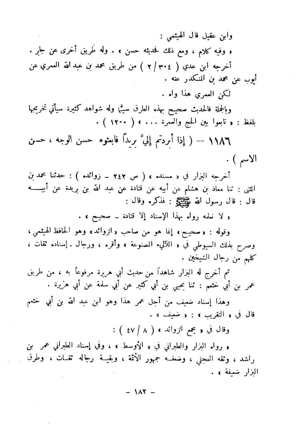 1186 - " إذا أبردتم إلى بريدا فابعثوه حسن الوجه حسن الاسم ".