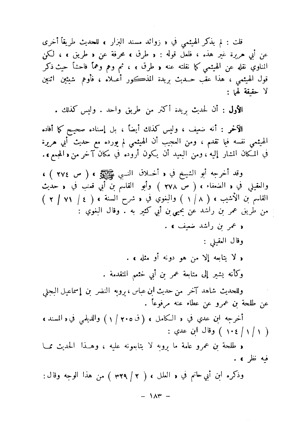 كما نقلته عنه " طرق "، ثم وهم وهما فاحشا حيث ذكر قول الهيثمي هذا عقب حديث