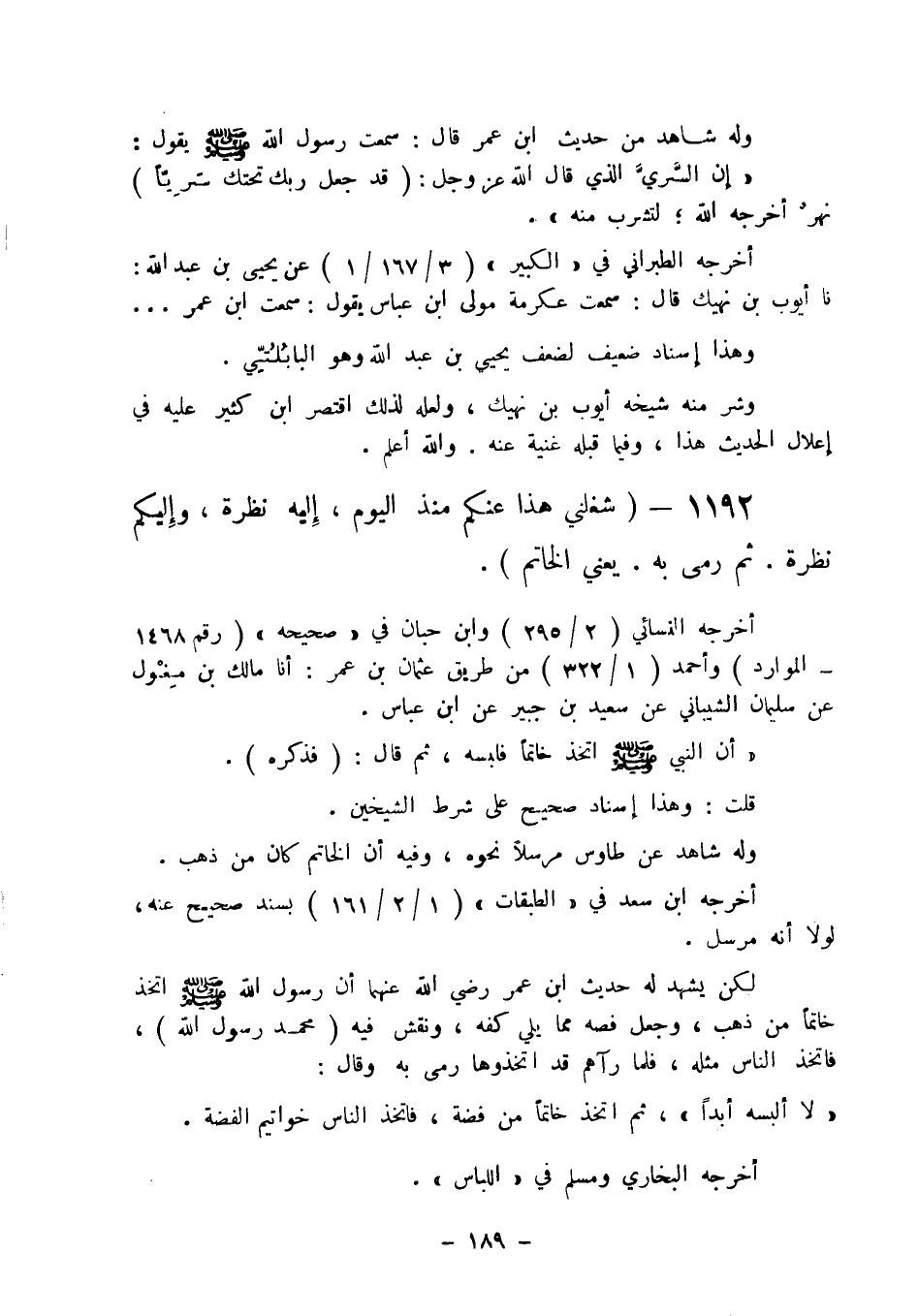 1192 - " شغلني هذا عنكم منذ اليوم، إليه نظرة، وإليكم نظرة. ثم رمى به. يعني