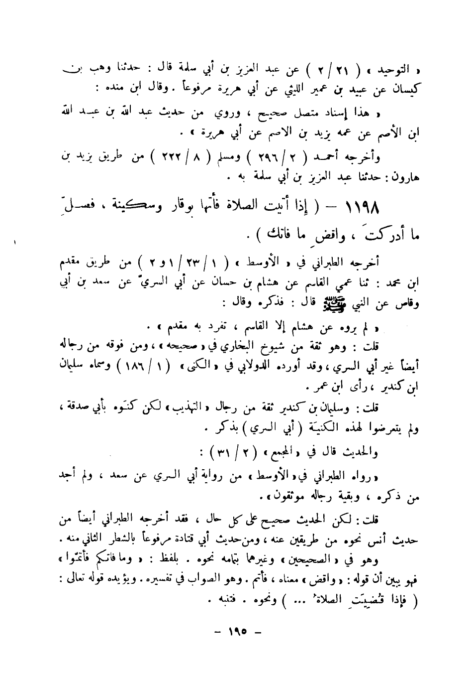/ 2) (انظر الاستدراك رقم 194 / 22) . عن عبد العزيز بن أبي سلمة قال: