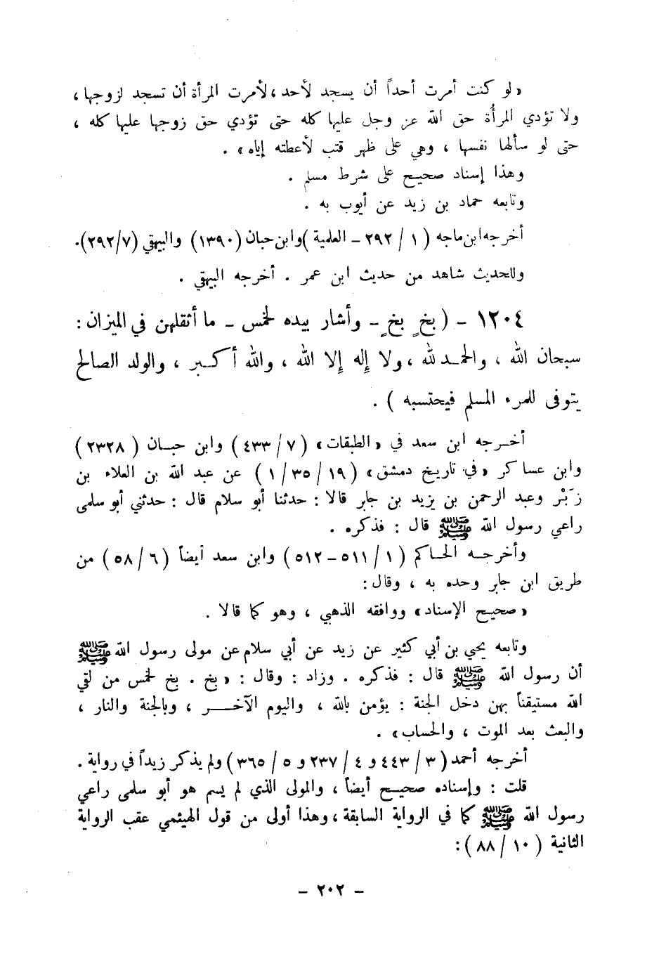 1204 - " بخ بخ - وأشار بيده لخمس - ما أثقلهن في الميزان: سبحان الله والحمد لله