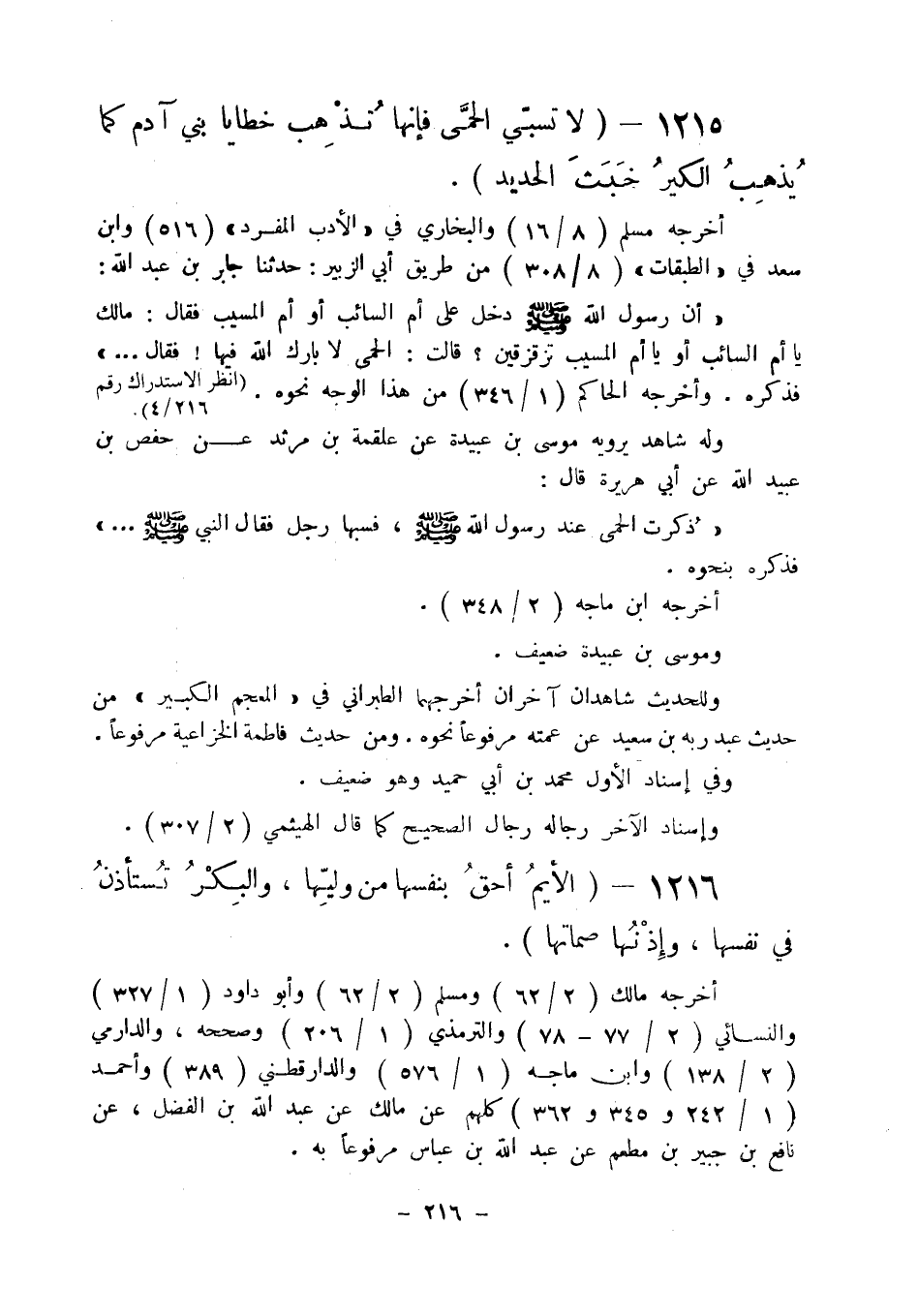 1216 - " الأيم أحق بنفسها من وليها والبكر تستأذن نفسها وإذنها صماتها ".