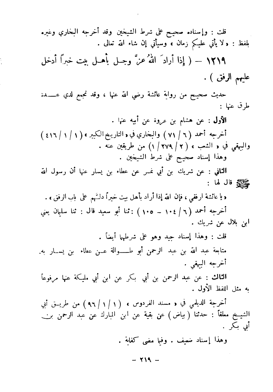 1219 - " إذا أراد الله عز وجل بأهل بيت خيرا أدخل عليهم الرفق ".