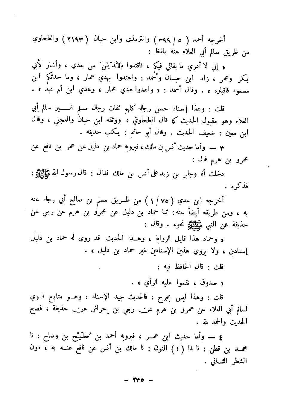 3 - وأما حديث أنس بن مالك فيرويه حماد بن دليل عن عمر بن نافع عن عمرو بن هرم
