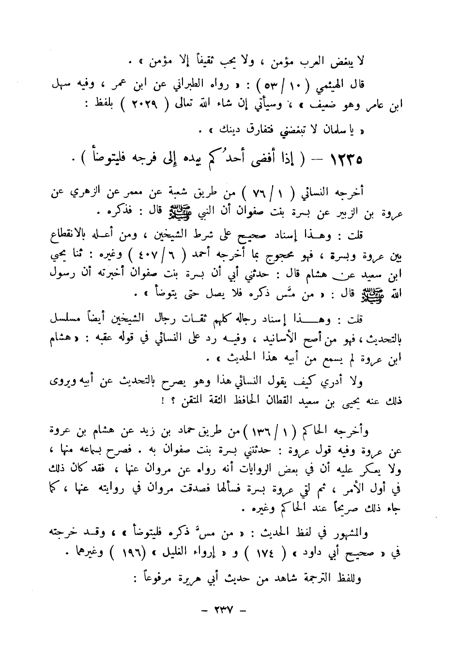 1235 - " إذا أفضى أحدكم بيده إلى فرجه فليتوضأ ".