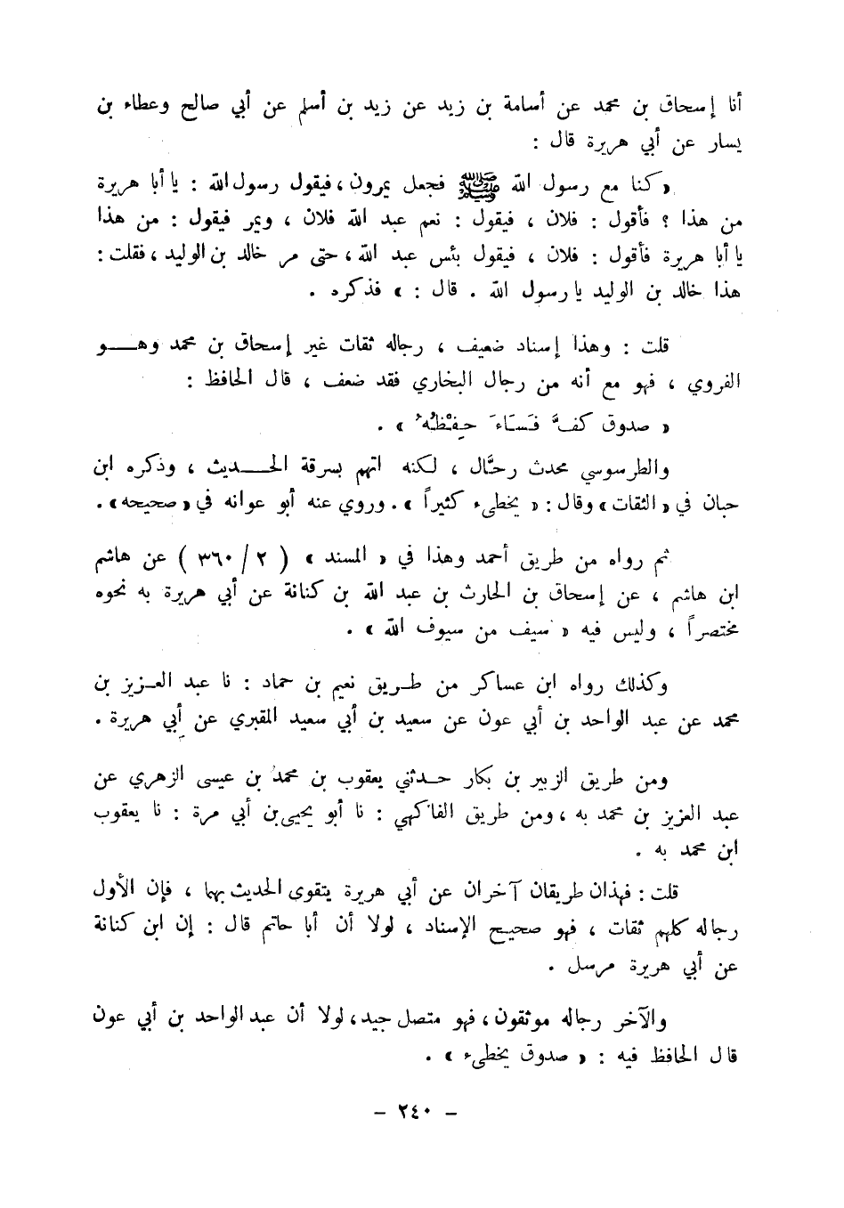 ابن محمد عن أسامة بن زيد عن زيد بن أسلم عن أبي صالح وعطاء بن يسار عن أبي