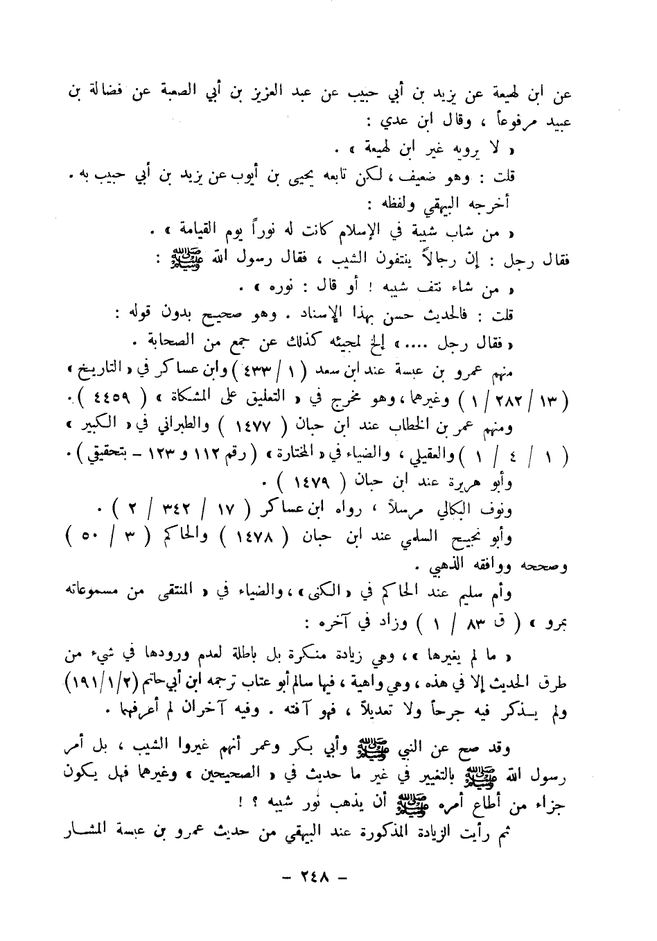 نور شيبه؟ ! ثم رأيت الزيادة المذكورة عند البيهقي من حديث عمرو بن عبسة