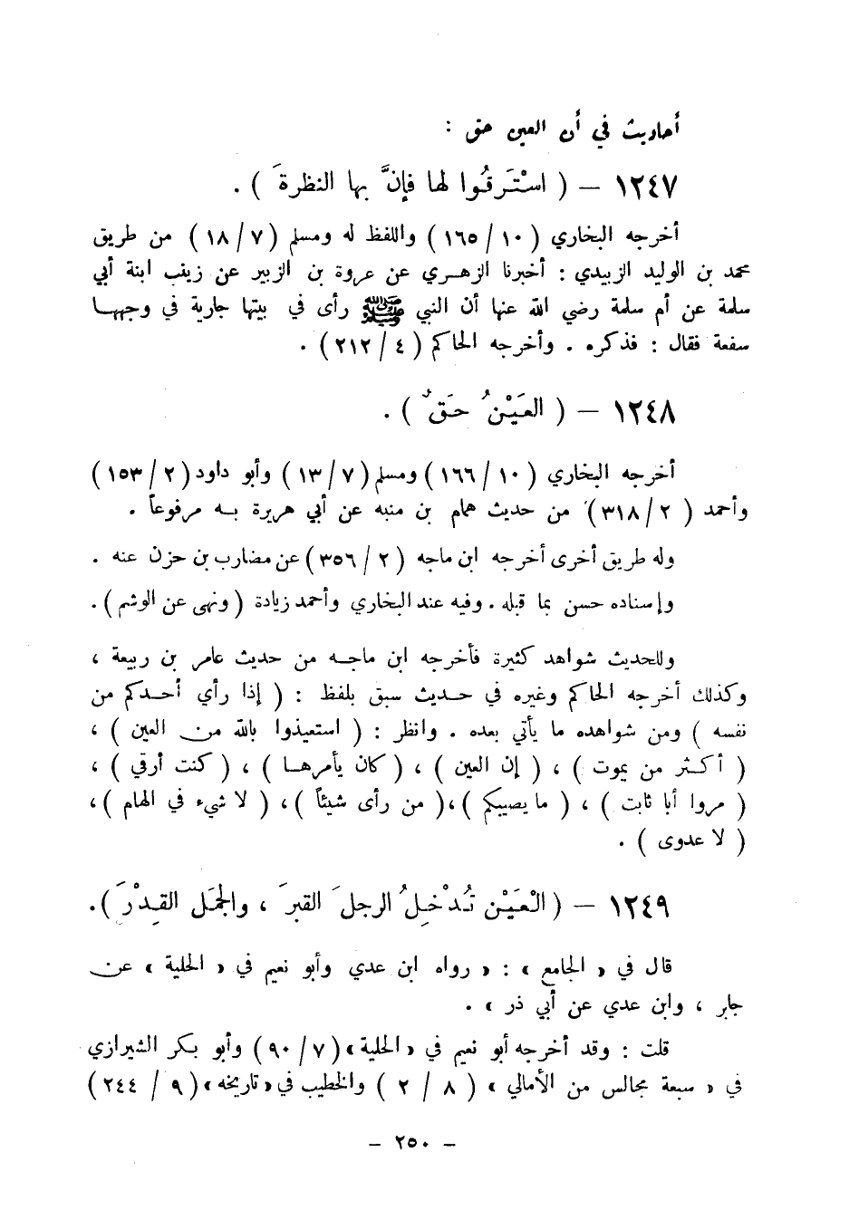 (استعيذوا بالله من العين) ، (أكثر من يموت) ، (إن العين) ، (كان يأمرها