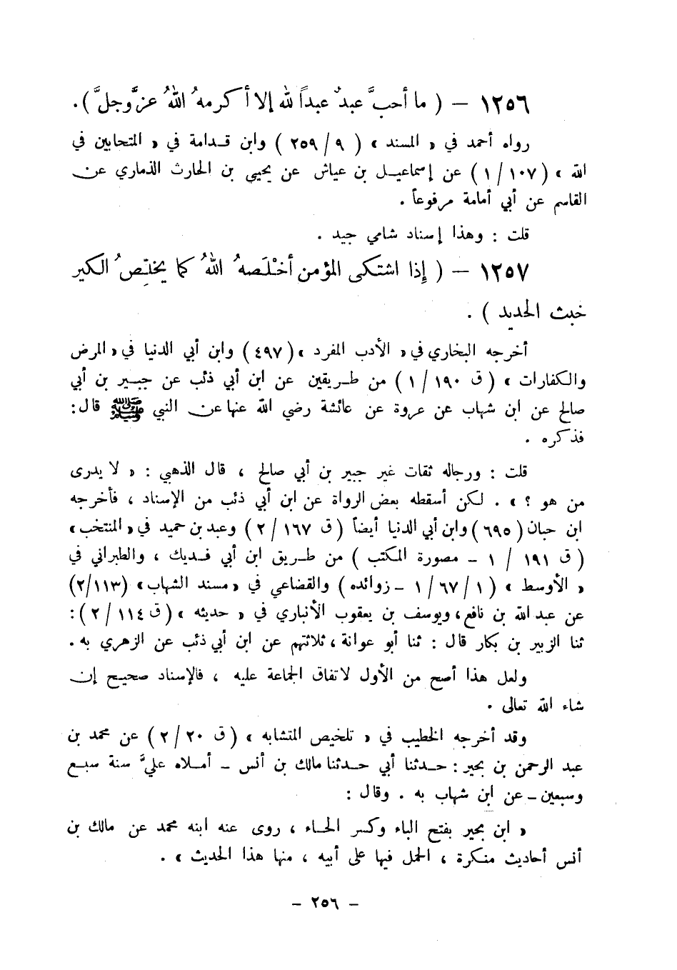 1257 - " إذا اشتكى المؤمن أخلصه الله كما يخلص الكير خبث الحديد ".