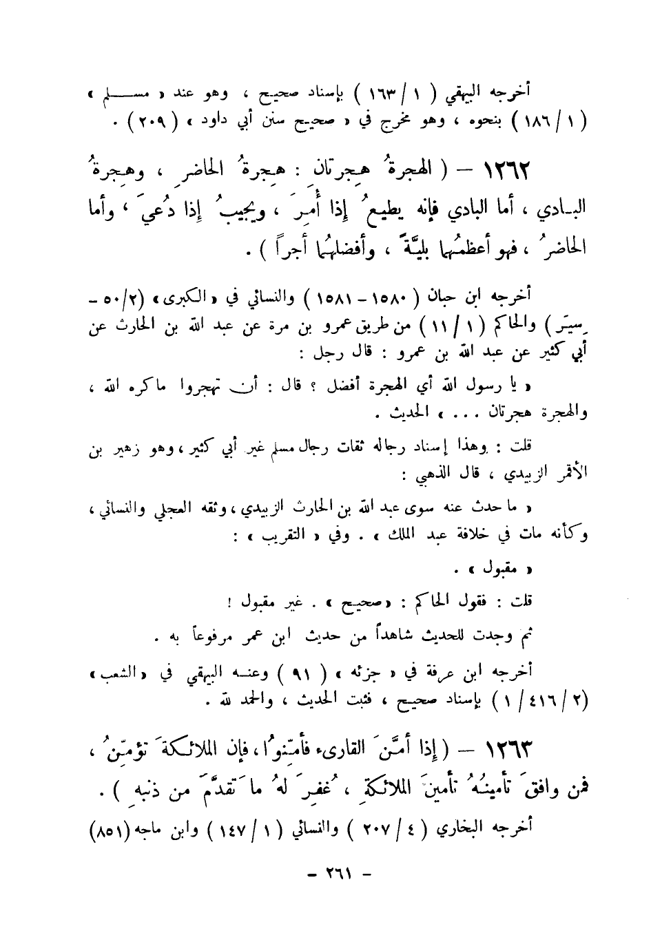 1262 - " الهجرة هجرتان: هجرة الحاضر وهجرة البادي أما البادي فإنه يطيع إذا أمر