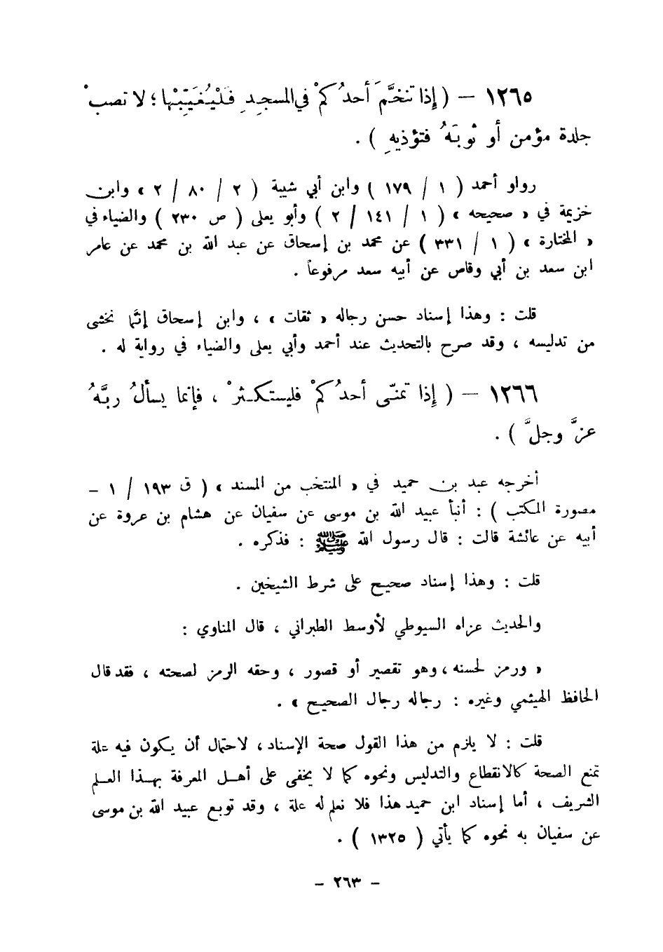 1265 - " إذا تنخم أحدكم في المسجد فليغيبها، لا تصب جلدة مؤمن أو ثوبه فتؤذيه ".
