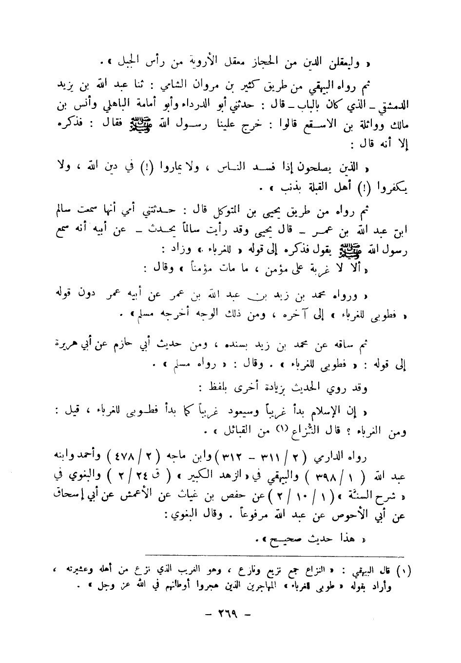 وعشيرته وأراد بقوله " طوبى للغرباء " المهاجرين الذين هجروا أوطانهم في الله