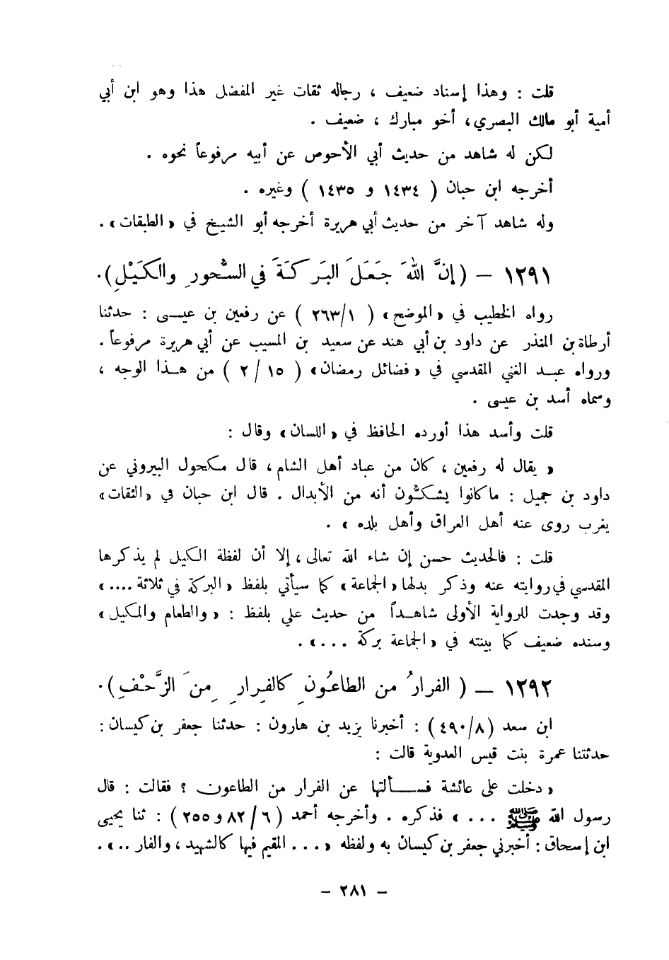 1291 - " إن الله جعل البركة في السحور والكيل ".