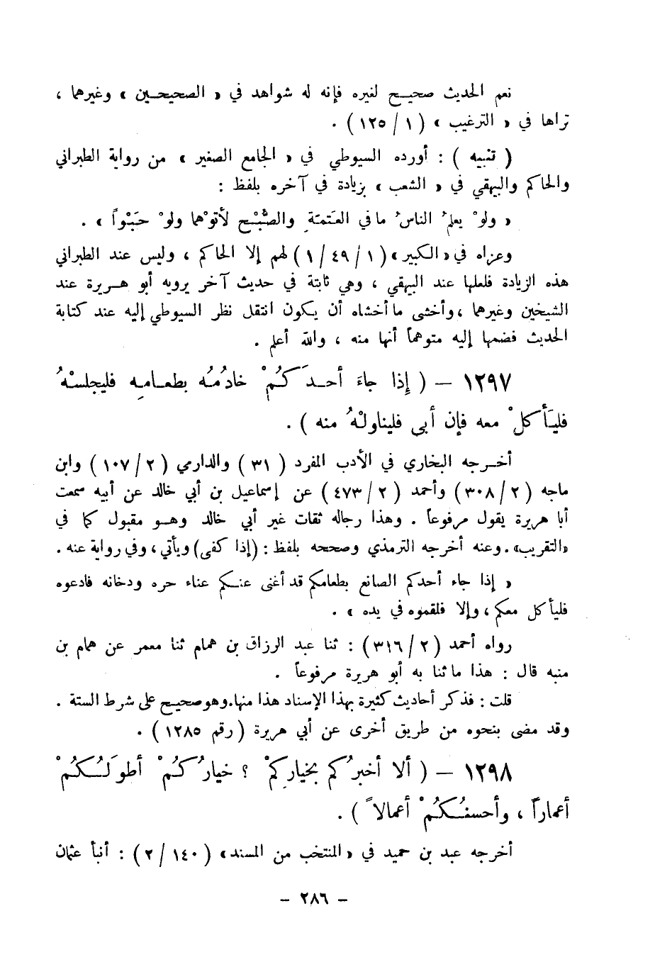 1297 - " إذا جاء أحدكم خادمه بطعامه فليجلسه فليأكل معه فإن أبى فليناوله منه ".