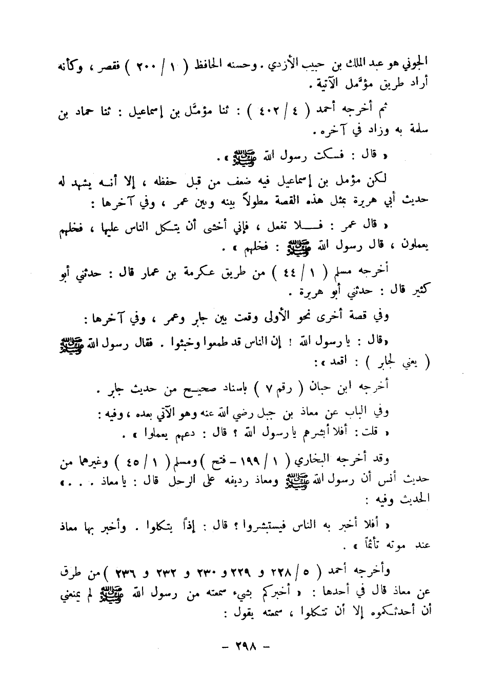 الملك بن حبيب الأزدي. وحسنه الحافظ (1 / 200) فقصر وكأنه أراد طريق مؤمل