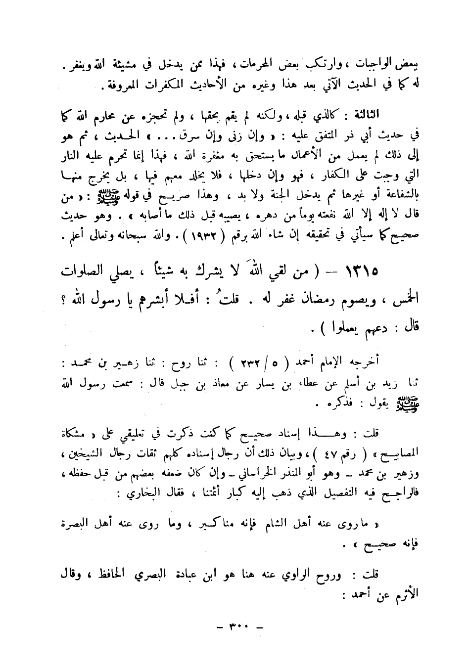 1315 - " من لقي الله لا يشرك به شيئا، يصلي الصلوات الخمس ويصوم رمضان غفر له.