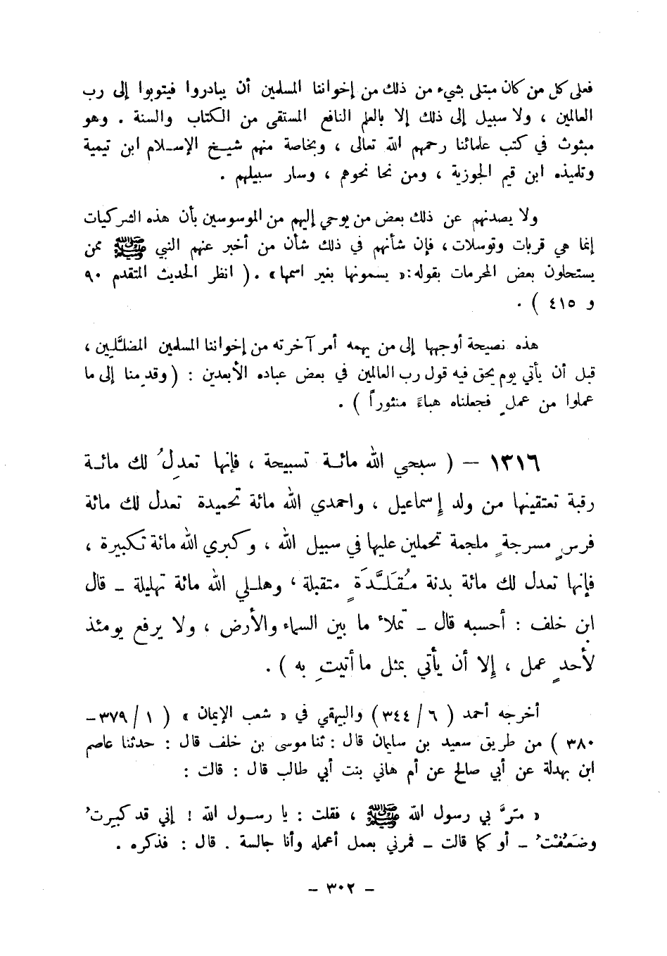 1316 - " سبحي الله مائة تسبيحة، فإنها تعدل لك مائة رقبة تعتقينها من ولد إسماعيل