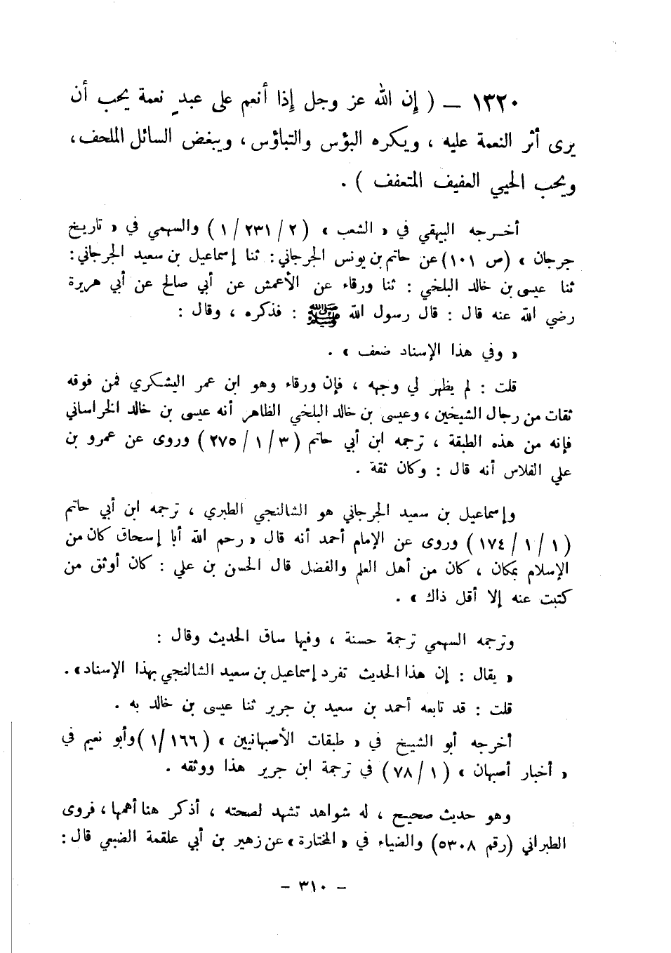 1320 - " إن الله عز وجل إذا أنعم على عبد نعمة يحب أن يرى أثر النعمة عليه ويكره