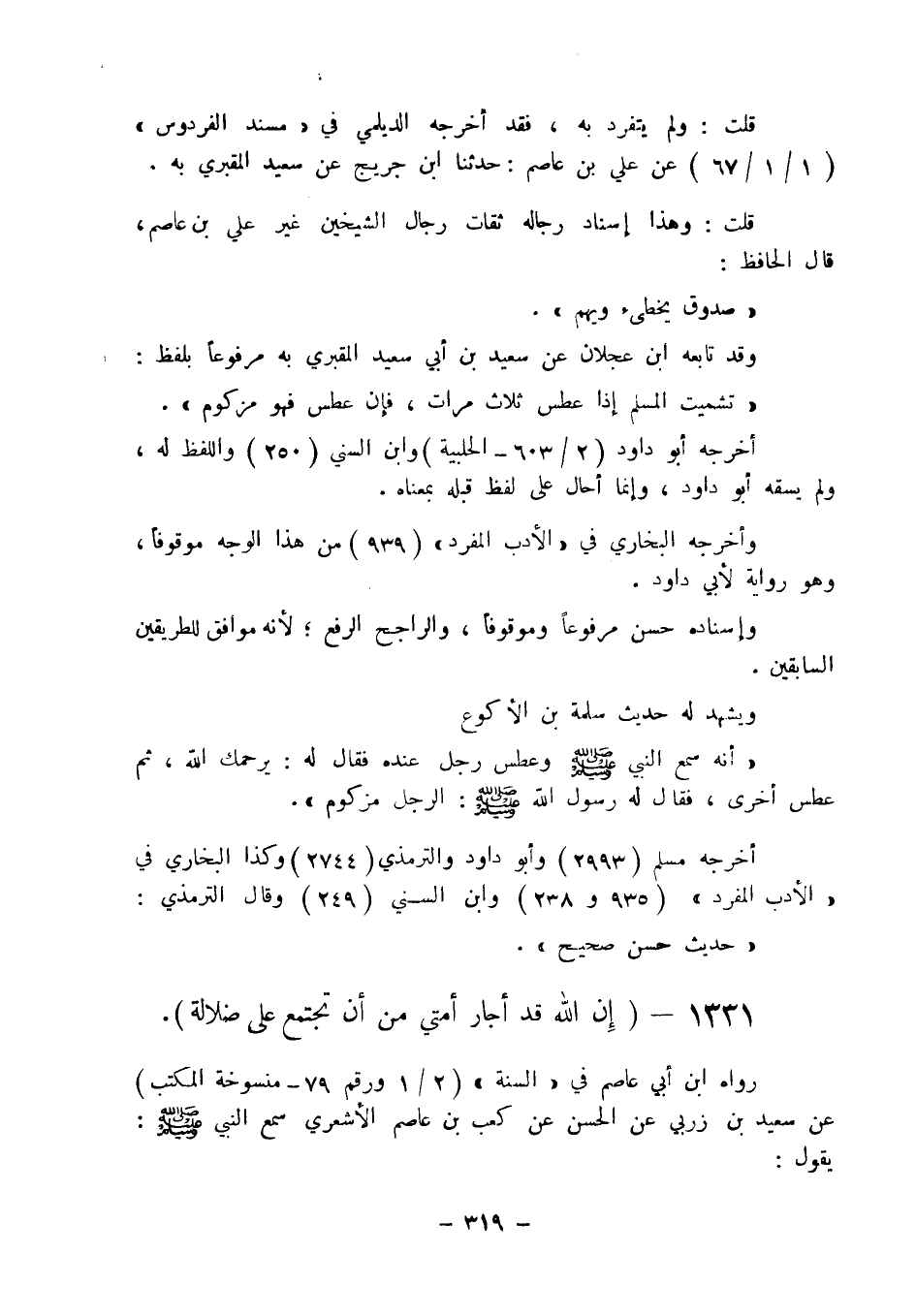 1331 - " إن الله قد أجار أمتي من أن تجتمع على ضلالة ".