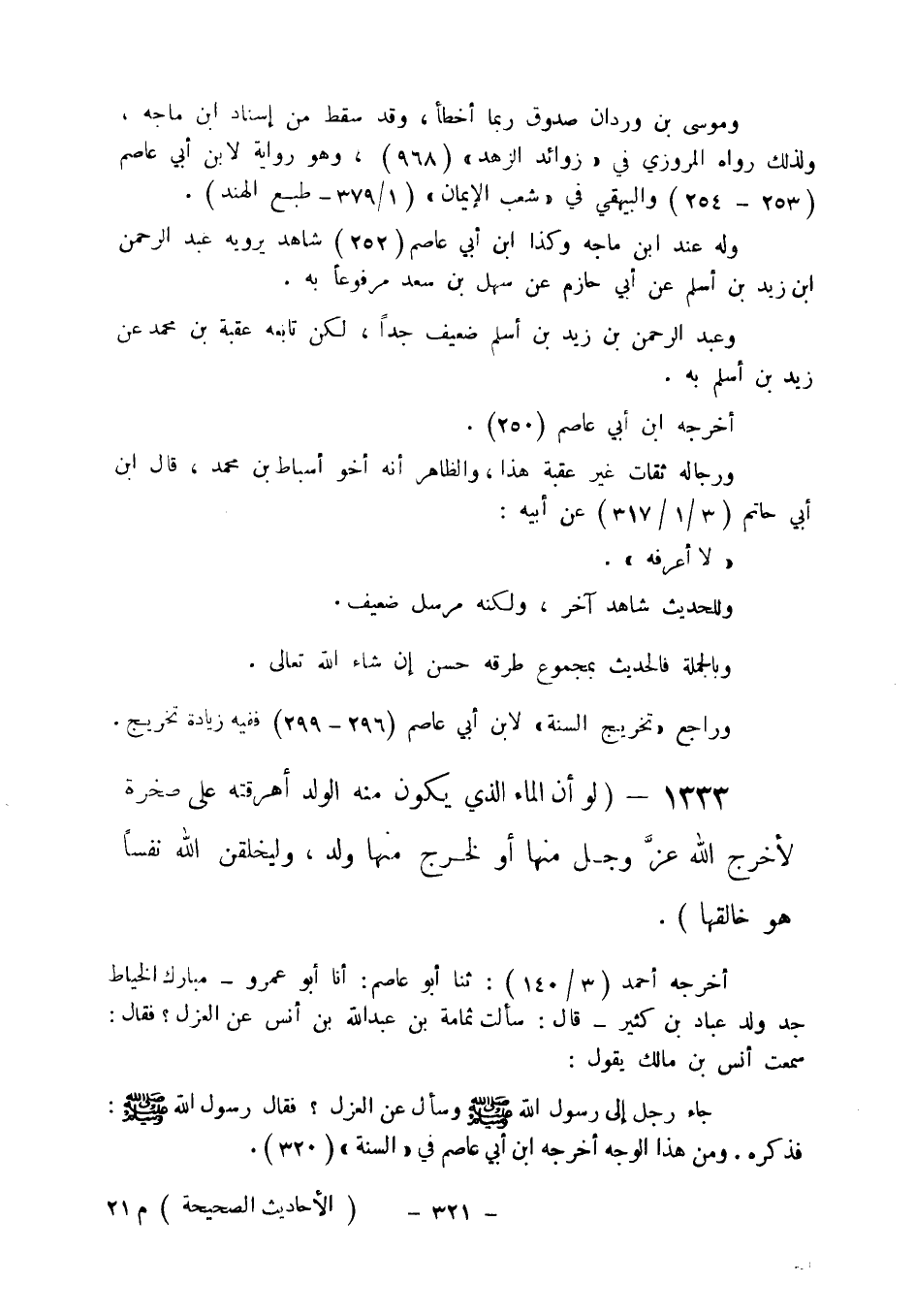(968) وهو رواية لابن أبي عاصم (253 - 254) والبيهقي في " شعب الإيمان "