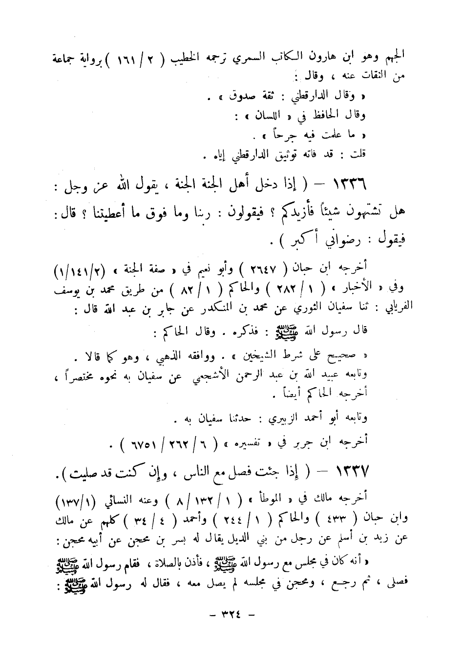 1336 - " إذا دخل أهل الجنة الجنة، يقول الله عز وجل: هل تشتهون شيئا فأزيدكم؟