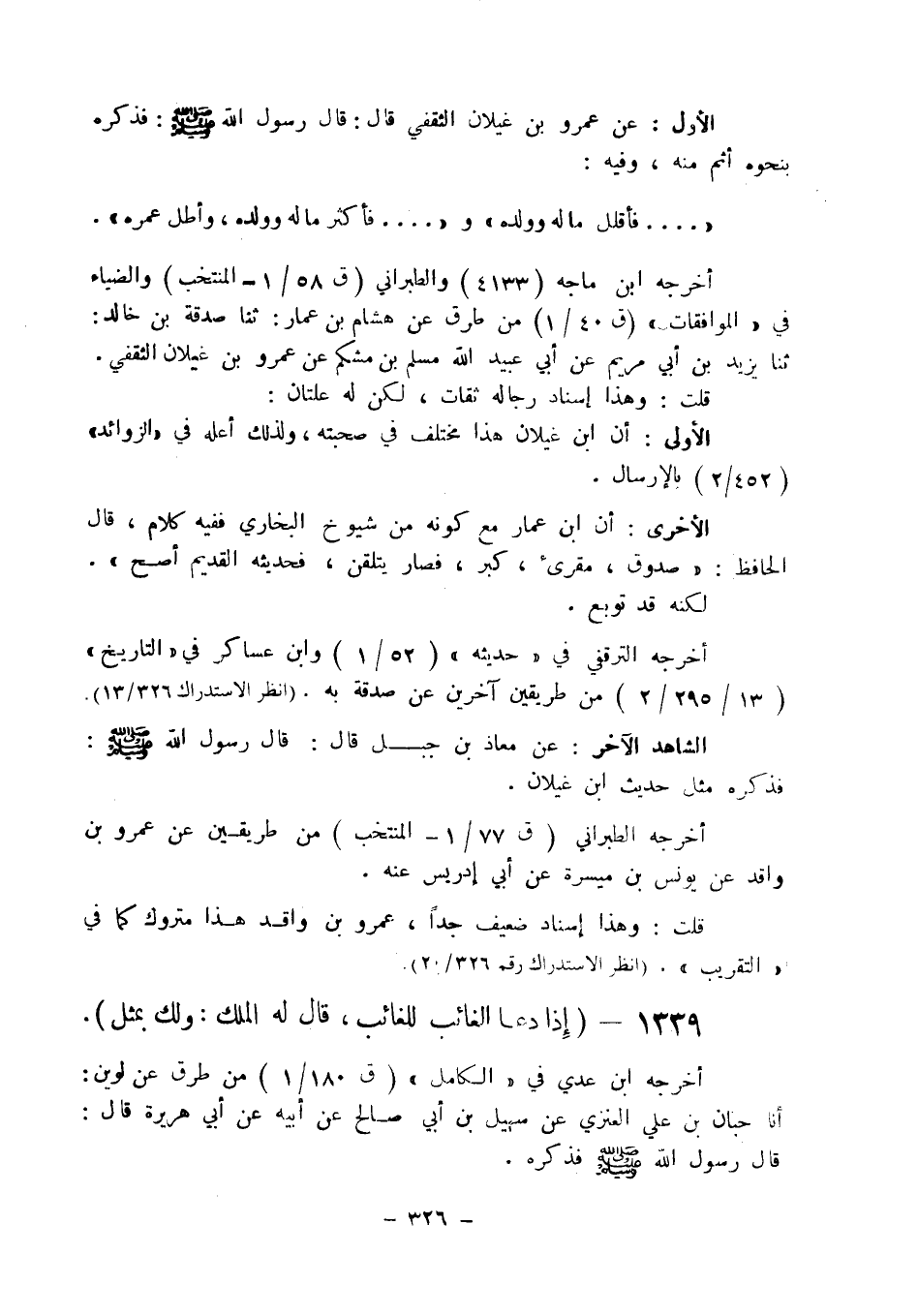 1339 - " إذا دعى الغائب للغائب، قال له الملك: ولك بمثل ".