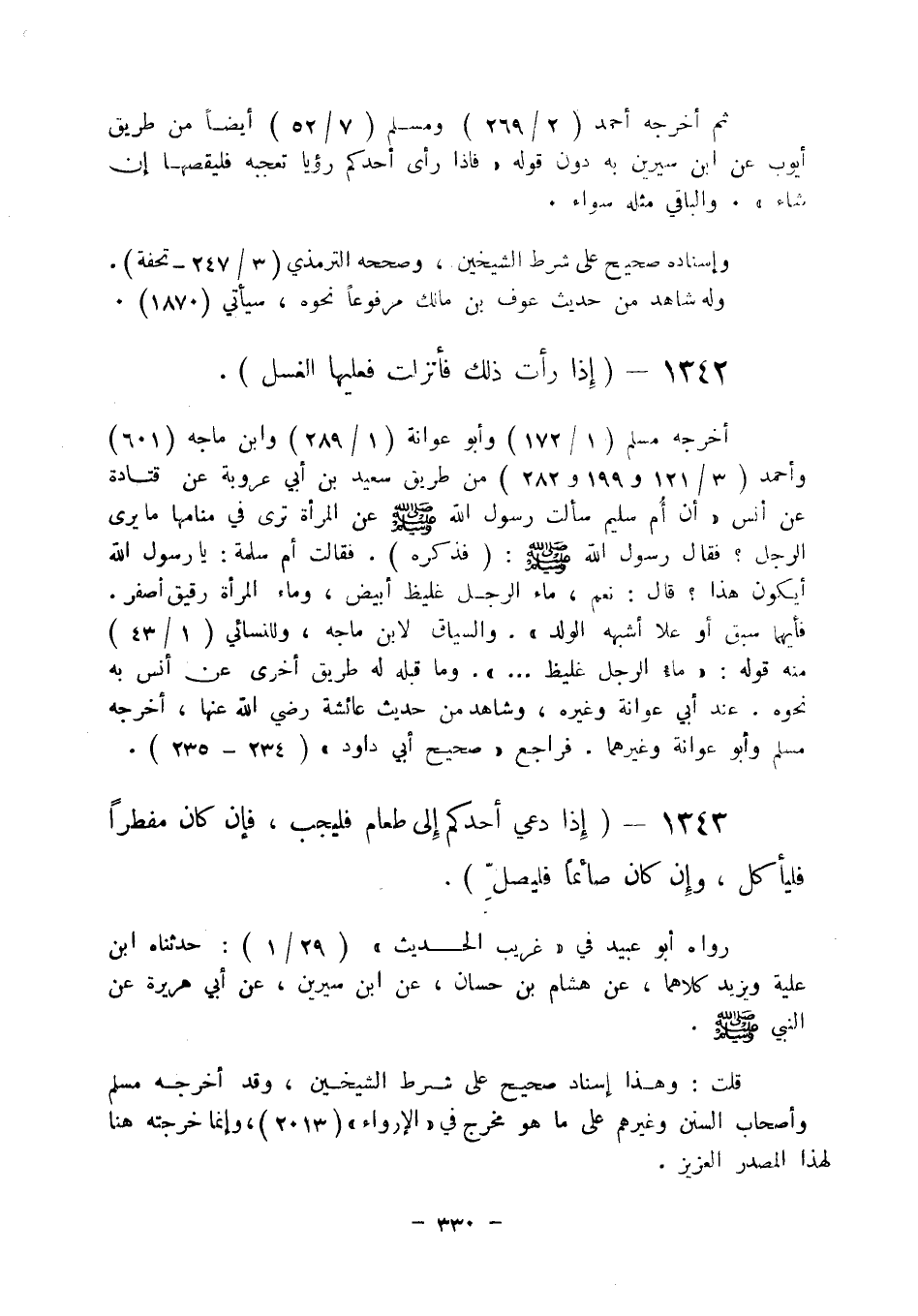 1342 - " إذا رأت ذلك فأنزلت فعليها الغسل ".
