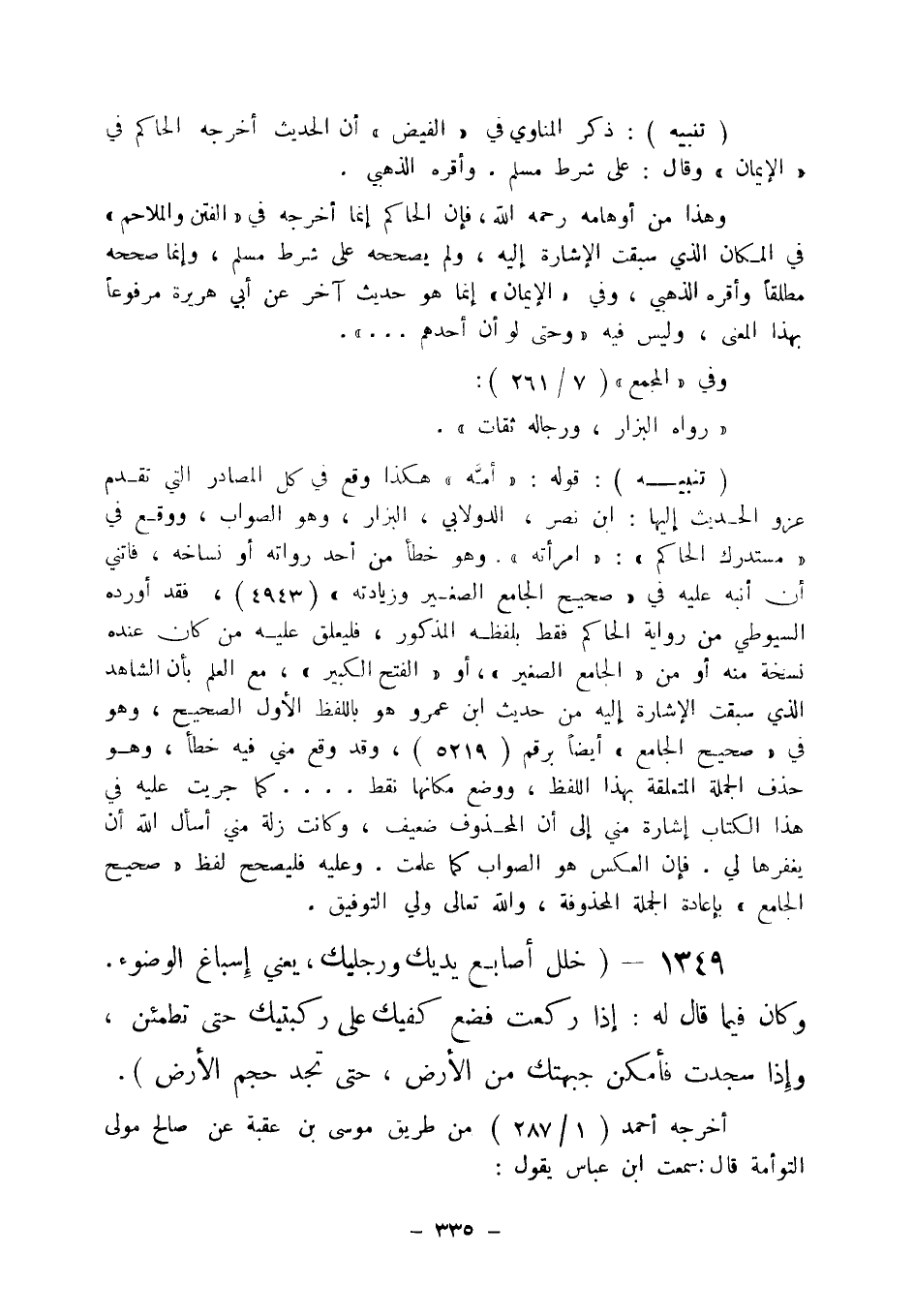 1349 - " خلل أصابع يديك ورجليك، يعني إسباغ الوضوء. وكان فيما قال له: إذا ركعت
