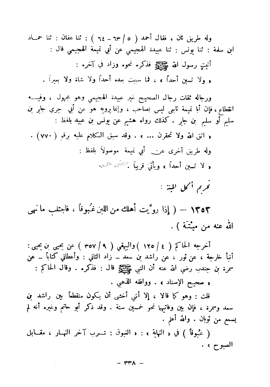 1353 - " إذا رويت أهلك من اللبن غبوقا، فاجتنب ما نهى الله عنه من ميتة ".