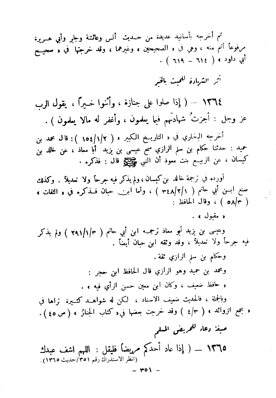 1365 - " إذا عاد أحدكم مريضا فليقل: اللهم اشف عبدك