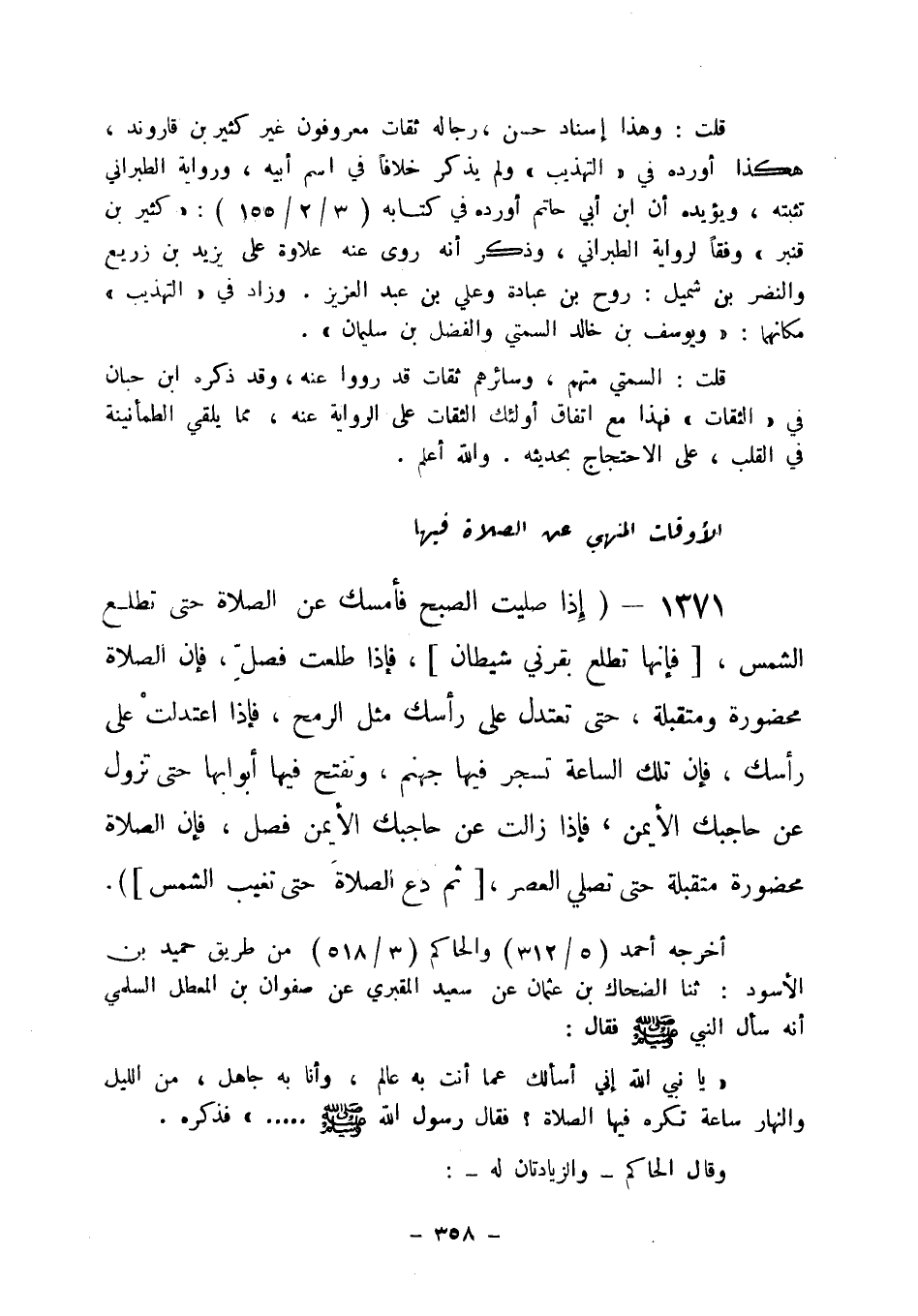 1371 - " إذا صليت الصبح فأمسك عن الصلاة حتى تطلع الشمس (فإنها تطلع بقرني شيطان) ،
