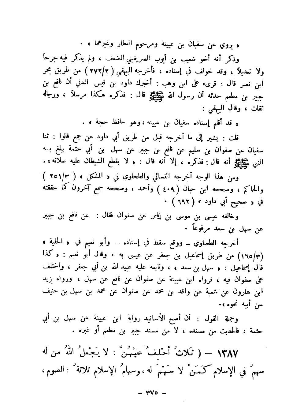 1387 - " ثلاث أحلف عليهن: لا يجعل الله من له سهم في الإسلام كمن لا سهم له، وسهام