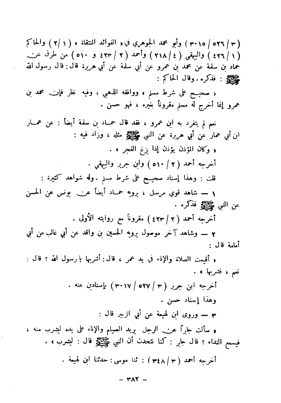 وفيه نظر فإن محمد بن عمرو إنما أخرج له مسلم مقرونا بغيره، فهو حسن. نعم لم
